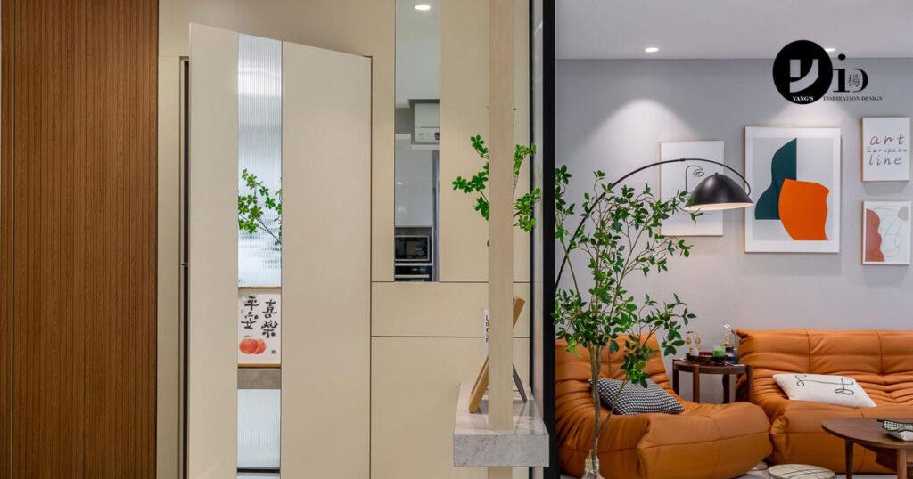 The idea behind the design was to promote a sense of openness by allowing natural light and airflow from the entrance, all while ensuring privacy. The addition of a marble counter adds a luxurious touch, enhancing the welcoming feel of the foyer.